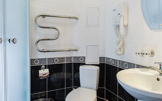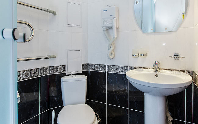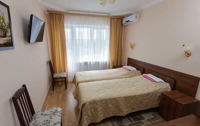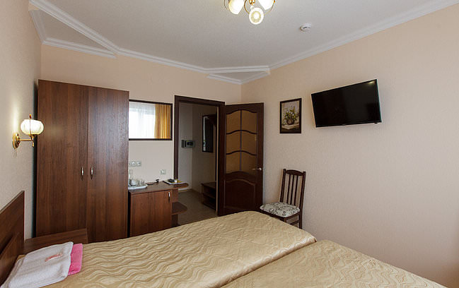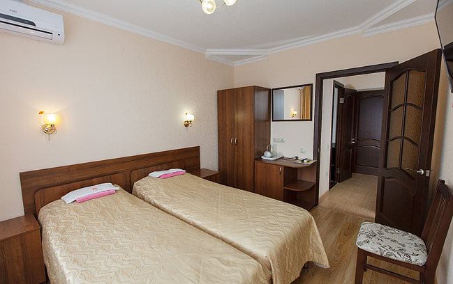 В номере две полуторные или двуспальная кровать, свежая мебель и сантехника, душевая кабина.